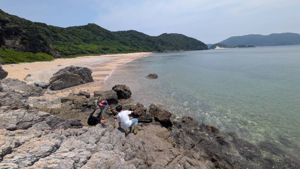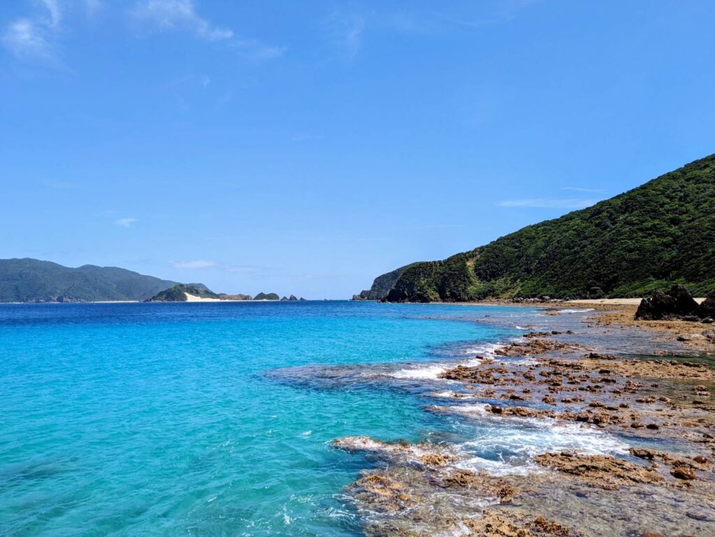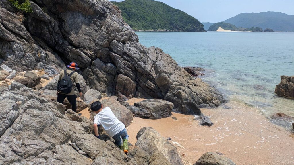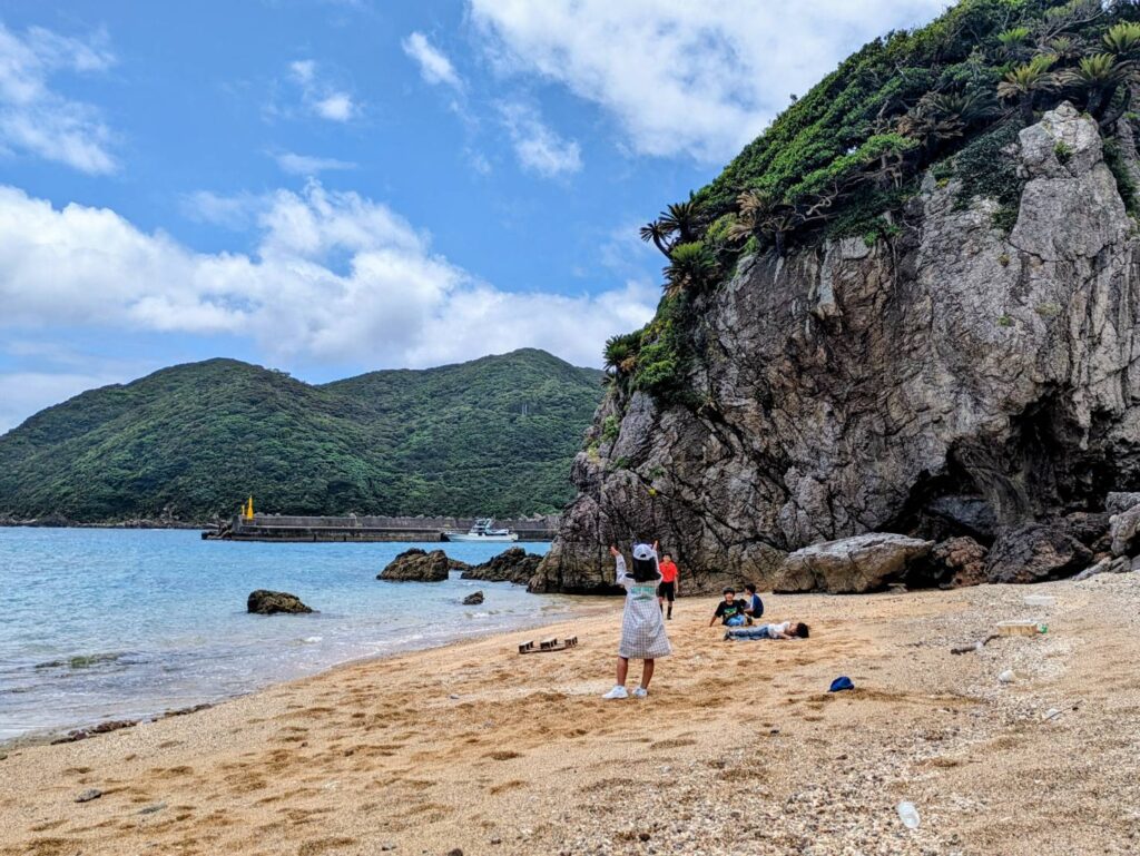 コハマビーチに行くには少し岩場を超えなくてはいけませんが、地元のおばあちゃんが貝を拾いに大きなカゴを背負って超えられる程度なので問題ないと思います。こちらも、滅多に人がこないプライベートビーチになりますが、港から丸見えなので、船の待ち時間などにこられるのが良いと思います。