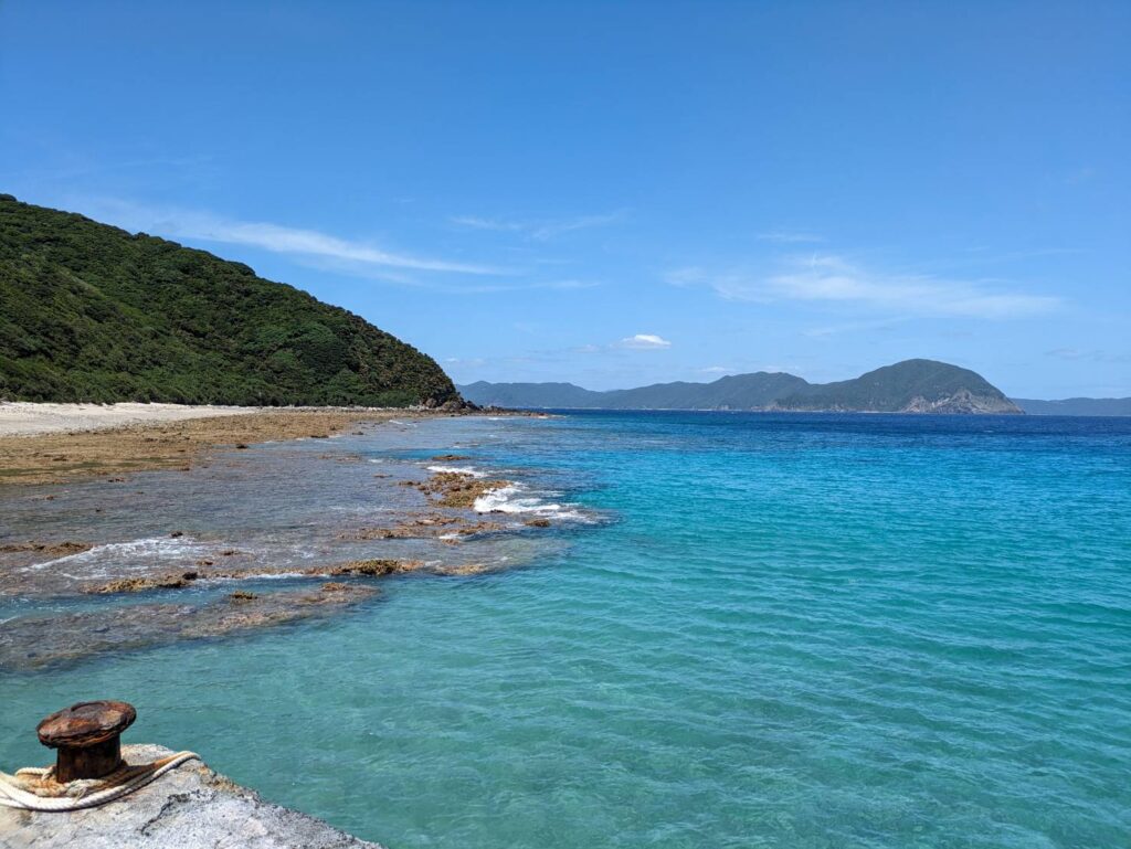 コハマビーチに行くには少し岩場を超えなくてはいけませんが、地元のおばあちゃんが貝を拾いに大きなカゴを背負って超えられる程度なので問題ないと思います。こちらも、滅多に人がこないプライベートビーチになりますが、港から丸見えなので、船の待ち時間などにこられるのが良いと思います。